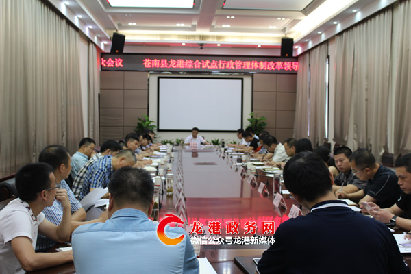 龙港网8月12日讯:昨天下午,龙港召开综合试点行政管理体制改革领导小组第八次会议暨龙港设市筹备工作领导小组第二次会议。县人大常委会主任苏庆明出席并主持会议,县委常委、龙港镇委书记丁振俊,副县长林朝朝、县政协副主席魏中梁及镇长陈为来、镇人大主席李孝取等试点改革领导小组成员、15个大部门负责人等出席会议。