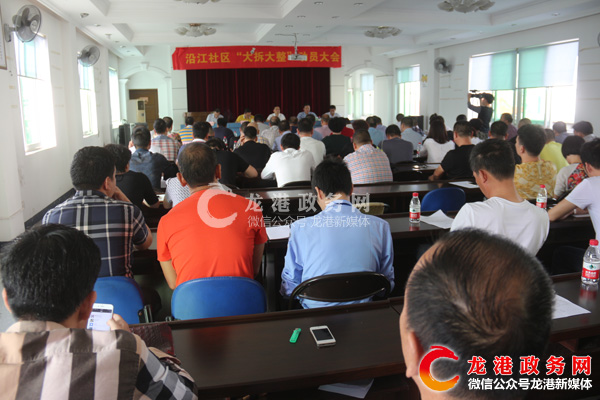 龙港网10月26日讯:为认真学习贯彻市、县、镇“大拆大整”专项行动动员大会有关会议精神,今天上午,沿江社区召开“大拆大整”专项行动动员大会,引导广大社区干部进一步树立责任意识、忧患意识,切实增强投身于“大拆大整”专项行动的思想自觉和行动自觉。镇领导黄义耀出席会议。