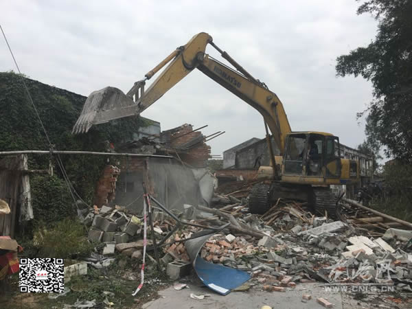 随后,陈为来又来到了新斗门,在现场,随着一阵阵机器的轰鸣声,一间间危旧房正在被拆除。据了解,综合执法局对前期工作人员排查出来的323间、占地总面积共20000多平方米土地上的危旧住房,进行了拆除。