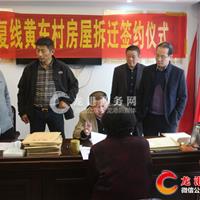 在拆迁签约仪式上,来自该村的黄乃榜、黄乃针早早地就在房屋征收补偿安置协议上签下了自己的名字,打响甬台温高速复线黄东村段房屋征收“第一炮”。甬台温高速复线龙港段全长13.9公里,共涉及239间房屋,其中161间房屋已经确权,投资36亿元左右。黄东村位于项目六标龙港枢纽区施工范围,该村涉及拆迁29间,占地面积1162.13平米,建筑面积2117.26平米。