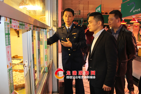 龙港网12月19日讯:为进一步提高菜市场整体服务,优化群众购物环境,落实民生工程。今天下午,县领导肖剑来龙港督查新渡菜市场创建“浙江省放心农贸市场”工作开展情况。镇委委员、副镇长朱文胜陪同。