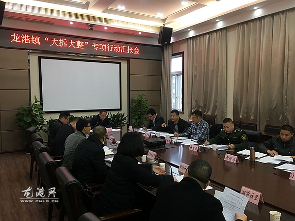 龙港政务网1月11日讯:今天上午,龙港镇召开“大拆大整”专项行动汇报会,会议通报了全镇“大拆大整”工作进展情况,县委常委、龙港镇委书记陈为来听取汇报后,强调三点意见并具体部署下一步工作,要求撸起袖子加油干,迈开步子加快干。镇长陈显宏和镇领导丁云勇、朱文胜、叶德腾以及经发局、国土规建局、安监局、执法局、考绩办,城北、沿江、湖前、平等社区负责人参加。