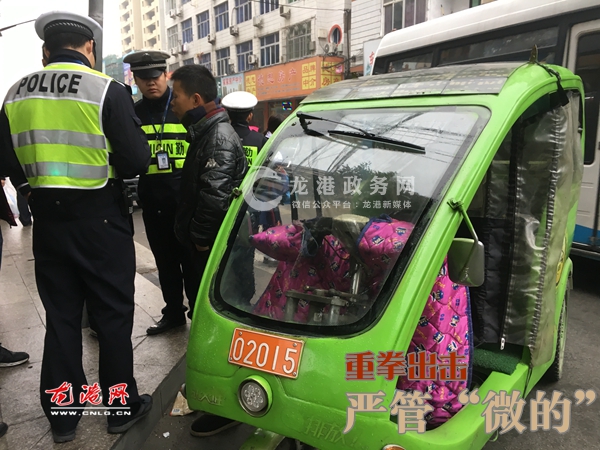 龙港政务网1月12日讯:春节临近,为了规范“微的”行车秩序,确保城区道理畅通有序。昨天,龙港镇社会治安综合治理服务局联合龙港交警队继续加大对“微的”显见性交通违法行为整治力度,特别是闯红灯、逆行、路口等地段影响通行的违法停车、不按非机动道行驶等违法行为进行查处。