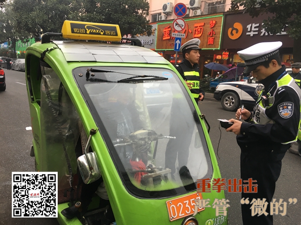 龙港交警队重拳出击 严管“微的” 13辆违法车被交警处罚