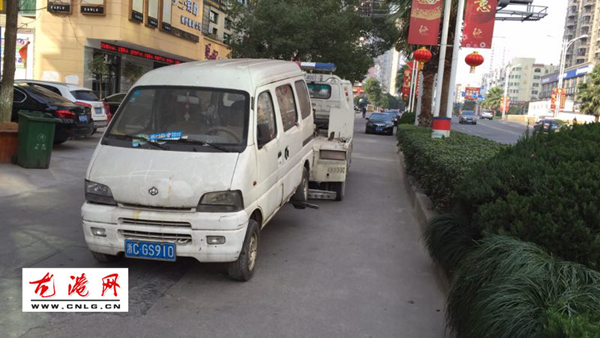 今天上午,龙港交警队陈警官来到现场,通过警务通平台,查询到车主联系手机号码,并告知车主,将此车移走。 车主一直不予配合,并强词夺理,他说:车子停在自家大厦下,关们们什么事呀!陈警官继续跟车主讲明情况,龙港大道是交通主干道,两侧人行道是不允许长期占道停车,请车主配合当前龙港治堵工作,车主依然不予理睬并挂掉手机。交警在大厦下整整等了半小时,不见车主下来移动车辆。交警只好依据交通法规:由于该车辆检验已逾期,并长期占用人行道乱停乱放而不听劝阻,并予以强制拖离现场。