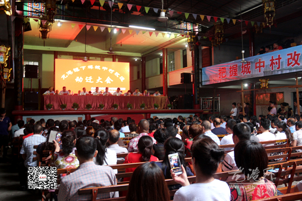 动迁会上,村民们热情高涨,全场座无虚席,甚至会场周边都站满了村民。城中村改造指挥部负责人分别从征收范围、实施时间、奖励优惠政策、安置地块位置、补偿安置方式等方面详细说明了下埠讯A-09-16地块拆迁政策,赢得了阵阵掌声。
