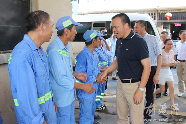 随后,慰问团一行还来到龙港环卫、交警,每到一处都向负责人了解高温期间的生产生活情况安排,并与坚守一线的工作人员交谈,嘱咐他们在高温作业时要注意自身安全,注意休息等安全事项。同时,慰问团还要求各有关部门单位要立足本职岗位,注意劳逸结合,要积极落实防暑降温工作,全力为奋战在一线的广大职工,营造良好的工作和生活环境,为全面地构建和谐社会作出新的贡献。