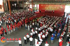 7月1日上午,苍南县无党派人士联谊会、温州市宏华义工社一场主题为“为党争辉·同心服务”迎七·一建党95周年活动,在龙港金河广场激情举行。