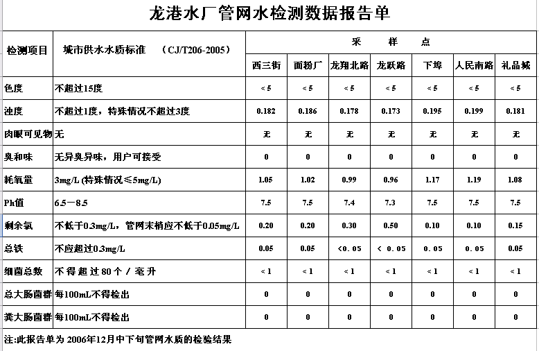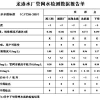 龙港水厂管网水检测数据报告单1
