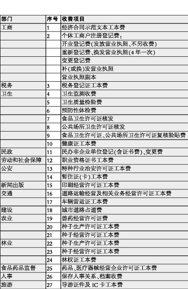 减免的27项行政事业性收费项目