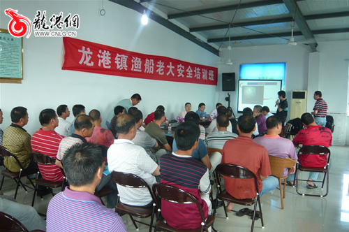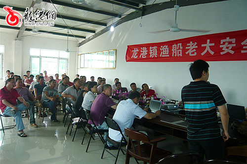 本网讯:6月17日早上,我镇所有渔船老大参加在渔业协会召开的海上作业安全培训会,副镇长李斯钢出席此次会议。