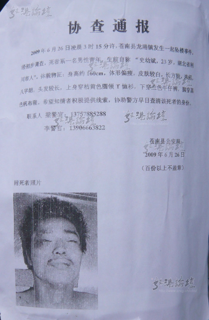 苍南县公安局协查通报