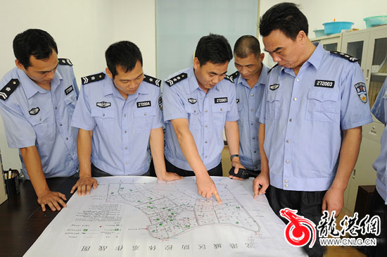 7月12日消息:龙港镇立足于区域治安实际,有针对性地健全和完善“打、防、管、控、建”长效机制,通过相互汇报情况,通力协作,使该镇治安联防协作取得了显著成绩,有力地推动全镇经济繁荣发展。图为综治办人员在商讨各路段的治安情况。(李士明/摄)