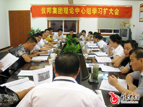 本网讯:2009年9月21日,仪邦集团举行第31次理论中心组学习扩大会。学习专题:十七届四中全会公报。仪邦集团董事长兼总裁应仲树、常务副总裁杜有龙、副总裁兼财务总监杨思罗、党委副书记林敏、总裁助理黄美娇、吕存平,以及各部门经理、副经理、助理和工、青、妇负责人参加了学习。集团党委书记、政治处主任、副总裁陈如奏主持学习扩大会。