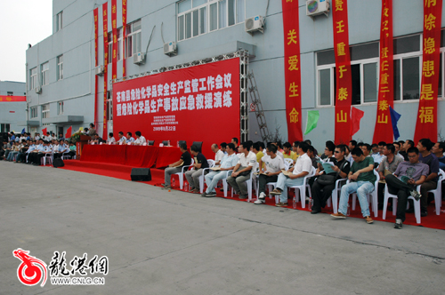 本网讯:22号下午,县安监局、龙港安监所联合在温州瑞普三利高分子材料有限公司举行了苍南县危险化学品生产事故应急救援演练。县、镇安监部门负责人及全县重点危险化学品企业负责人等100多人观摩了演练。
