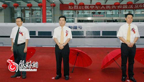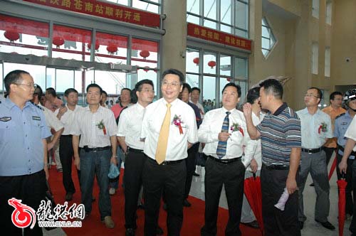 县长黄寿龙代表县委、县政府对温福铁路苍南站通车表示热烈的祝贺