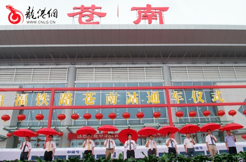 本网讯:今天上午:备受百万苍南人民关注的温福铁路苍南站顺利通车,结束了苍南没有铁路的历史。县领导章方璋、苏庆明、黄寿龙、杨成秋、林晓峰、邱华萍、陈力同、汤宝林、冯蒋龙、董旭斌等领导出席通车仪式。