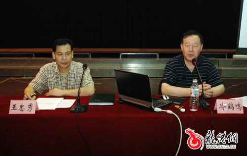 镇长王忠秀(左)、上海市委党校教授冷鹤鸣(右)