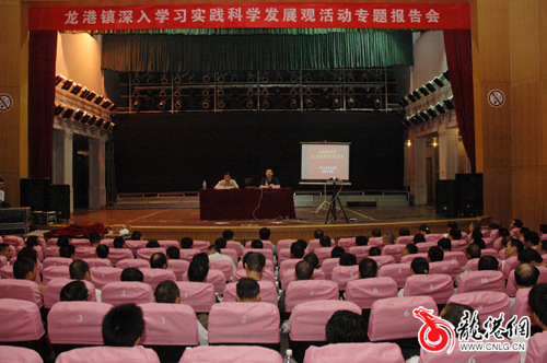 本网讯:我镇举行深入开展学习实践科学发展观活动专题报告会,报告会邀请了上海市委党校教授冷鹤鸣前来主讲,作了“继续解放思想,深入贯彻落实科学发展”报告。县委常委、龙港镇委书记汤宝林及镇三套班子、各办事处、各部门单位、镇属机关全体人员听取了报告。镇长王忠秀主持报告会。