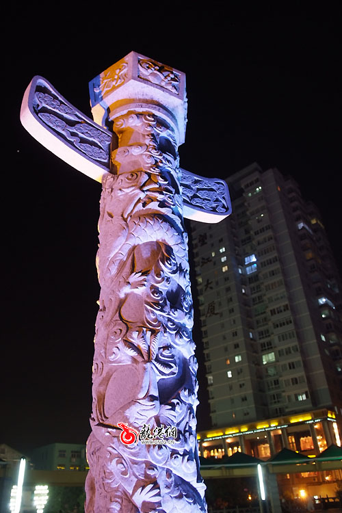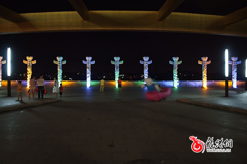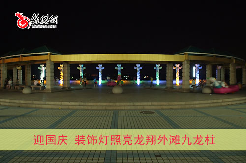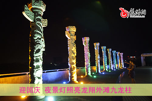 本网讯:今晚(30日),龙港龙翔外滩广场九龙柱建筑物被多彩的灯光照亮,丰富了外滩公园周边夜景景观照明效果。龙港供电所组织力量经过20天的紧张施工,共完成了沿街建筑物楼体照明10处,更换安装节能灯泡近1.5万个,在国庆前夕为龙港夜色增添了一道靓丽的风景,每天傍晚6点,外滩的夜空将被多彩的灯光点亮。(龙网摄)