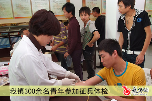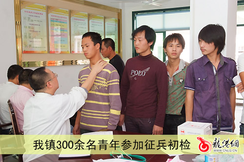 本网讯:(杨介友 沈佳佳)新中国成立60周年庆典激发了广大适龄青年参军报国的热情,10月16日至10月17日,是我镇征兵体检初审的日子。这几天来,我镇征兵目测初检工作全面展开,300多名适龄青年踊跃到征兵体检站参加目测体检,应届大学生应征热情高涨。