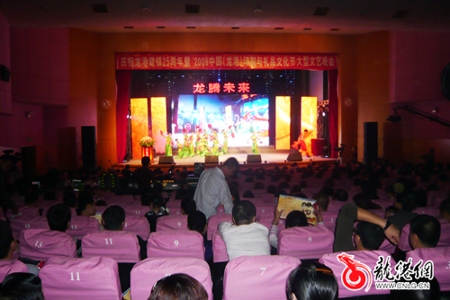 本网讯:10月15日晚上,庆祝龙港建镇25周年暨2009中国龙港印刷与礼品文化节大型文艺晚会在龙港影剧院举行。县镇领导汤宝林、王忠秀、项延宝、金珍敏、吕存阳等以及社会各界人士近千人到场观看演出。
