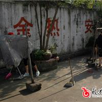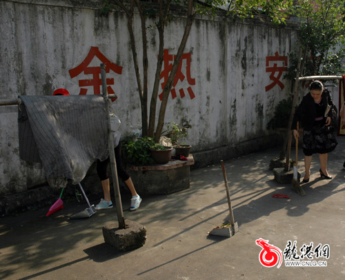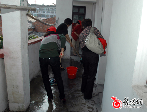 志愿者为老人们清扫地面
