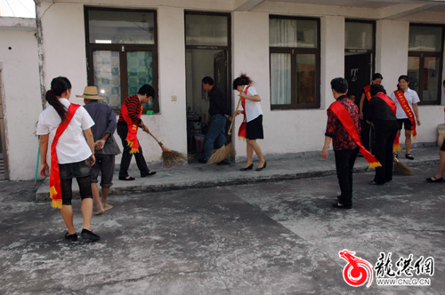 志愿者为老人们清扫地面