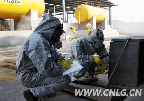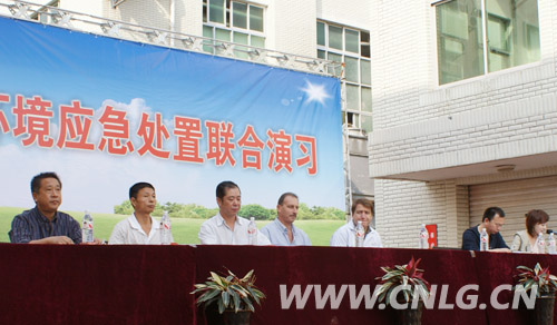 据了解,此次演习由县环保局组织实施,演习地点为湖前嘉利达苍南明胶有限公司,现场模拟该公司发生硫酸泄露事故。演习开始后,环保部门马上成立临时应急指挥部,通知应急现场调查组、现场监测组、现场处置组和专家咨询组等立即赶赴污染现场进行处置,各应急小组均在预案规定的时间内带齐所需的仪器、设备赶到现场,并立即进行现场处置。