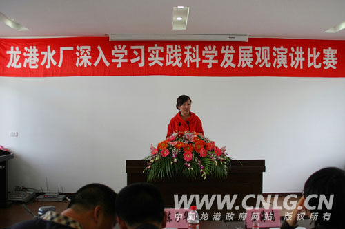 龙港水厂通过以演讲的方式,来组织和号召全厂职工进行科学发展观的学习,体现了工作的新思路,新方法。并希望大家以本次演讲比赛为新的起点,在以人为本全面协调可持续发展的理论指导下,紧密联系实际工作,身体力行的践行科学发展观,为水厂的现代化建设奉献自己的一份力量!