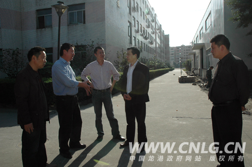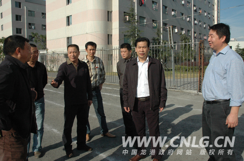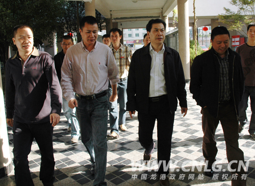 图为镇长王忠秀到龙港二高检查该校成立10周年校庆筹备工作