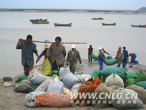 图二:沿浦湾养民收割的第一水紫菜上岸