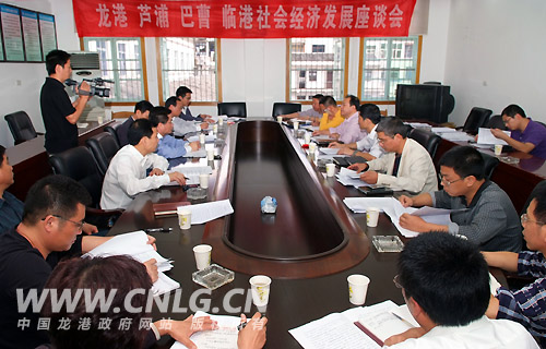 本网讯:2009年11月10日下午,龙港镇、芦浦镇、巴曹镇以及临港产业基地建设指挥部等四个单位在龙港镇召开社会经济发展座谈会。会上四个单位就各自发展情况以及下步发展思路进行了交流和探讨。县委常委、龙港镇委书记汤宝林、县政协副主席、临港产业基地建设指挥尤有光、县民政局、县规划建设局及龙港、芦浦、巴曹等三个镇主要领导参加了会议。