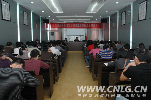 本网讯:11月11日上午,龙港镇举行科学发展观学习实践活动信息员培训会。此次培训旨在继续做好龙港学习实践活动的信息报送工作,提高信息的质量和水平,及时、全面、准确地反映龙港学习实践活动的进展和成绩。