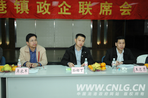 镇长王忠秀在会上指出,面对当前经济形势,政企要加强联动,合心合力,迎难而上,涉企部门要帮助企业减负解困,切实做到及时服务、真心服务、高效服务,积极主动采取各种有效措施,全力帮助企业克难制胜,稳定发展。王忠秀要求,各部门要配合企业紧抓项目推进,要细化优化强化服务工作,帮助企业加快产业结构调整,促进优化升级,要加大大企业、大集团培育力度,要强化节能减排和企业生产要素保障,为企业发展创造良好条件,努力促进龙港经济又好又快发展。