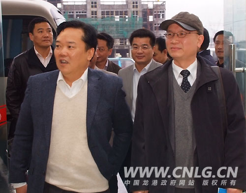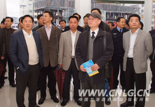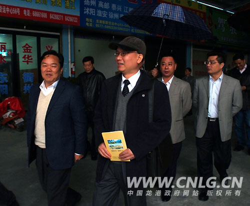 图为市县镇领导陪同中央综治委督导组领导视察我镇下垟郑村新联货运中心