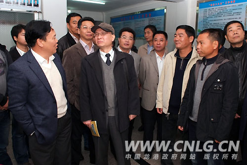 图为11月16日下午,市委副书记朱贤良,县委书记章方璋,县委副书记林晓峰,县委常委、龙港镇委书记汤宝林,镇长王忠秀陪同中央综治委督导组领导视察我镇下垟郑村。