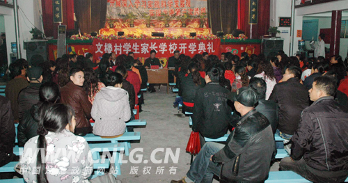 图为江山办事处文楼村学生家长学校举行了开学典礼