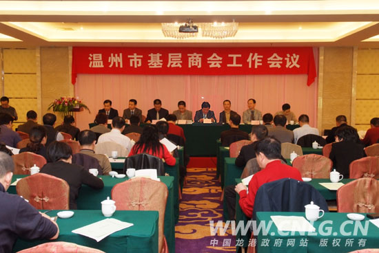 本网讯:2009年11月26日,温州市基层商会工作会议在龙港镇泰安大酒店三楼会议室召开,温州市工商联系统各县(市、区)工商联以及各基层商会领导、负责人共计100多位参加会议,温州市政协副主席、温州市工商联主席郑胜涛、温州市委统战部副部长、市工商联党组书记赵芳铭、市工商联副主席徐欣隆、赵文冕、县委常委、统战部长林万乐、县政协副主席、县工商联主席孙绍丁、县委统战部副部长、县工商联党组书记赵加沈出席会议,温州市委统战部副部长、市工商联党组书记赵芳铭作重要讲话,龙港镇长王忠秀致欢迎辞,市人大代表、县工商联副主席、龙港商会会长倪法川作典型发言,会议由市工商联副主席王心阜主持。
