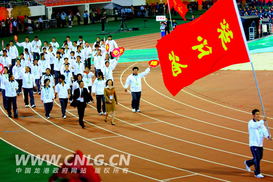 陈光银代表浙江团旗手走进全国第6届农运会开幕式现场