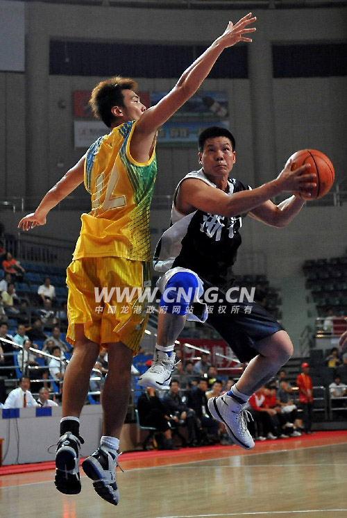 10月24日,浙江队球员陈光银(右)在比赛中上篮。