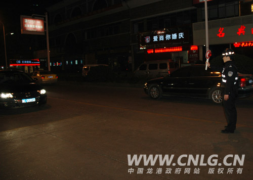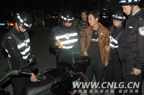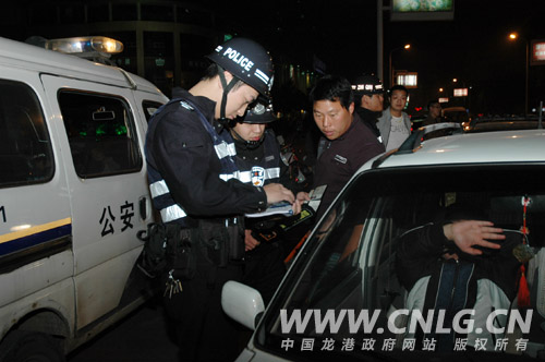 晚上8点,龙港公安分局全体民警集中统一行动,采取清查、检查、设卡、巡逻四结合的方式,以网吧、旅馆、娱乐场所为重点,检查管理漏洞,清查违法犯罪嫌疑人员,在城区重点路口设立卡哨,检查过往的可疑车辆和人员,纠正和查处各类交通违法行为,在重点路段巡逻,防范盗抢案件的发生。行动中查获违法人员8名,并对2名较为严重的违法人员采取了强制措施。