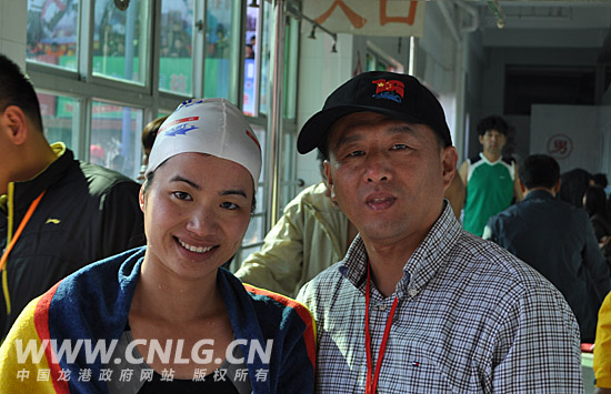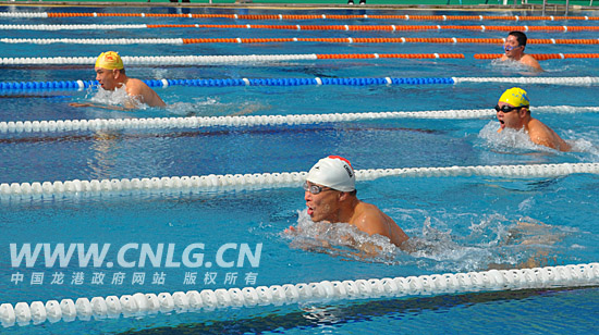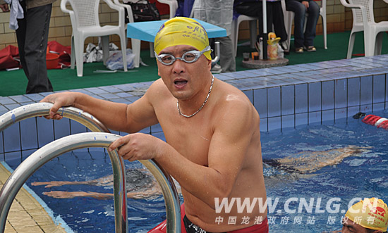 图为:我镇冬泳队员黄定军获得了50米自第36名、100米蛙第38名