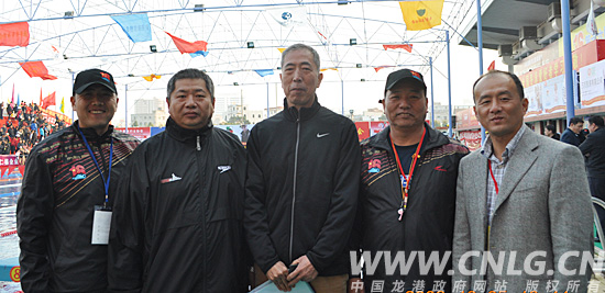 中泳协冬泳委员会副主席 蔡卓明 (右二)福建省游泳管理中心副主任 周玉成(左二)