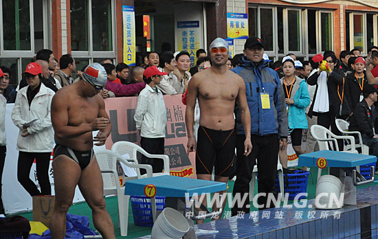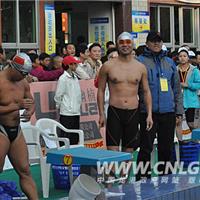 图为:国家体育总局游泳运动管理中心冬泳委员会秘书长林森林 (中间)