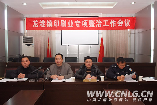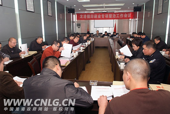 本网讯:12月9日,我镇召开印刷业整治专项工作会议,重点部署整治工作。苍南县工商局局长历达森,龙港镇委委员、副镇长朱诗良,县公安局党委委员、龙港镇委委员、龙港公安分局局长张立吕出席会议,镇印刷业整治办主任朱照喜主持会议;以及各办事处、职能部门负责人参加了会议。