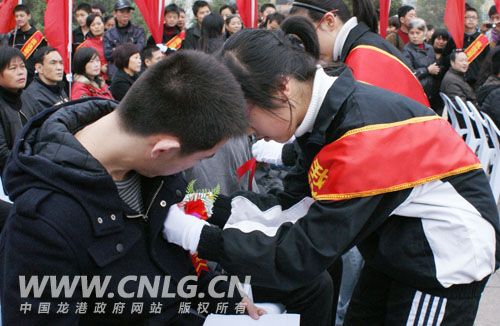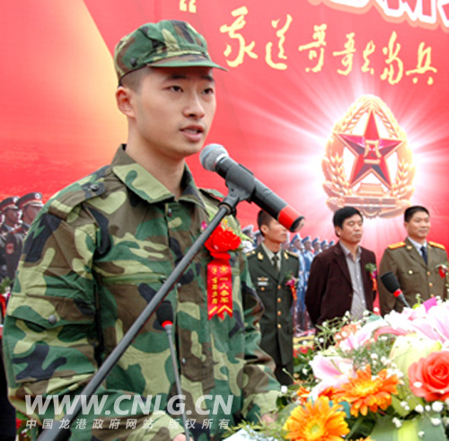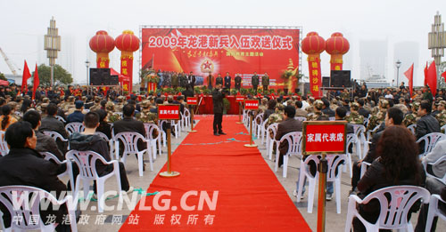 本网讯:12月9日下午,我镇新兵入伍欢送仪式暨中学生“我送哥哥去当兵”主题活动在龙港外滩隆重举行。镇领导王忠秀、上官光强、金珍敏、黄传朴、吕存阳等参加了欢送仪式。