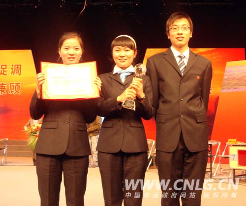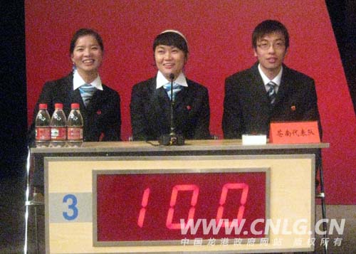 本网讯:12月10日,全市"小册子"评选和非公有制经济组织学习实践科学发展观知识竞赛决赛在温州电视台演播大厅隆重举行。仪邦集团代表全县非公企业组队参赛,选手由仪邦集团员工薛圣杰、薛小静、王芳三人组成,在通过第一轮笔试预赛后,与瑞安、乐清等八支代表队进入决赛。经过必答、抢答、限时答题和风险题等多轮角逐,仪邦集团参赛选手沉着应答,最终以227分获得第二名,为仪邦、为龙港、为苍南争得了荣誉。
