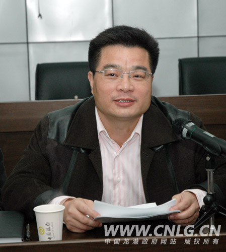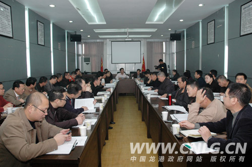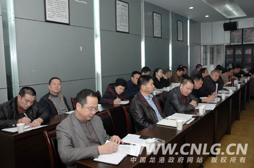 会议由县委常委、龙港镇委书记汤宝林主持。会议首先传达市委书记邵占维昨天在龙港调研时的讲话内容。下一阶段,我镇要调结构、保增长,进一步加快服务业发展。全力加快龙港城镇化建设。
