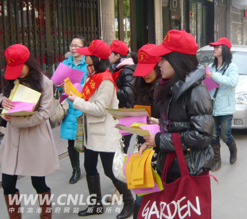 志愿者们向过往行人分发各种法律知识宣传册